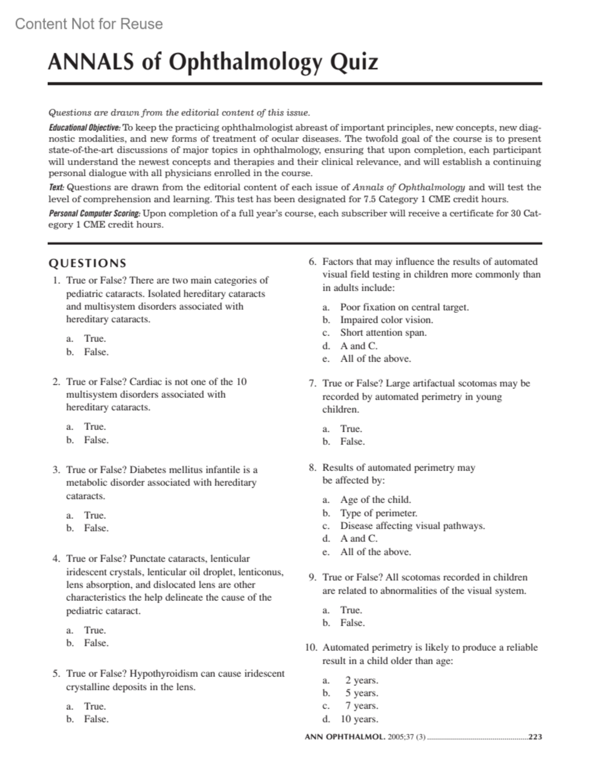 Annals of Ophthalmology 37(3):p 227, Autumn 2005.