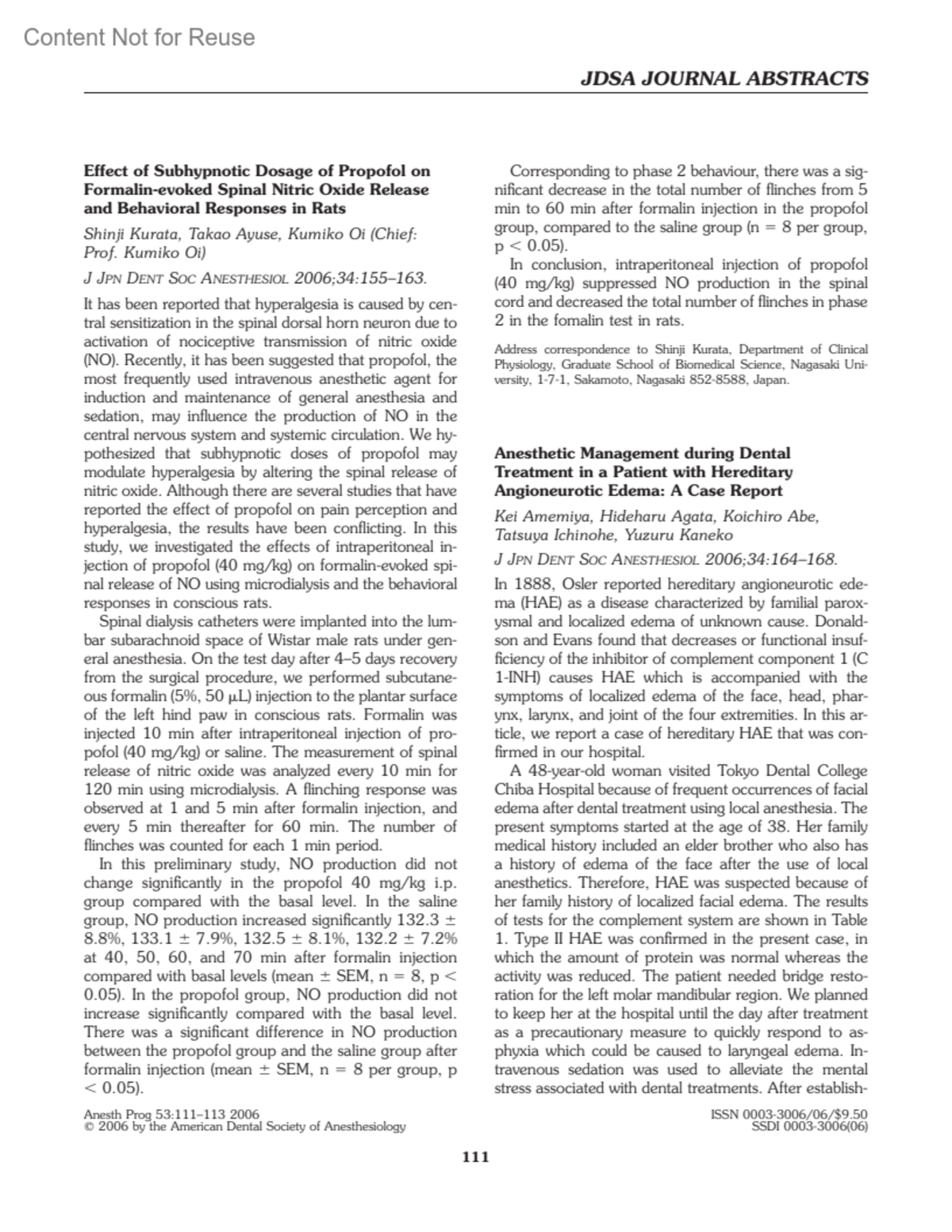 Anesthesia Progress 53(3):p 111-112, September 2006.