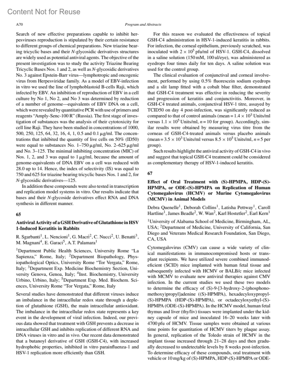Antiviral Research 70(1):p A70-A71, May 2006.