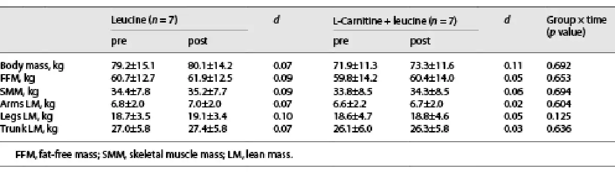 Leucine, a branched-chain amino acid, may play a role as a regulator of intracellular signaling pathways involved in the process of protein synthesis []. However, recent studies have not confirmed the effects of leucine supplementation on muscle strength or hypertrophy []. Nevertheless, leucine has been reported to increase insulin levels []. Therefore, we hypothesized that 24 weeks of LC supplementation in combination with leucine could improve the transport of LC into muscles.