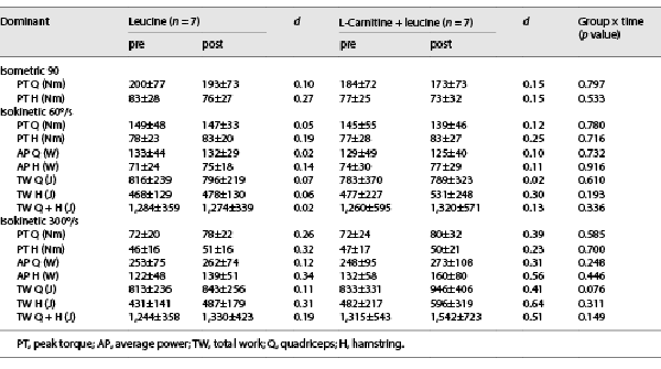 Moderate effect sizes were noted in the LC + L group for the changes in hamstring average power and total work in the dominant (Table 2) and nondominant (online suppl. Table S1; for all online suppl. material, see http://www.karger.com/doi/10.1159/000529333) legs, whereas the effect sizes were small in the L group (Table 2 and online suppl. Table S1). No changes were noted in the body mass and composition (Table 3).