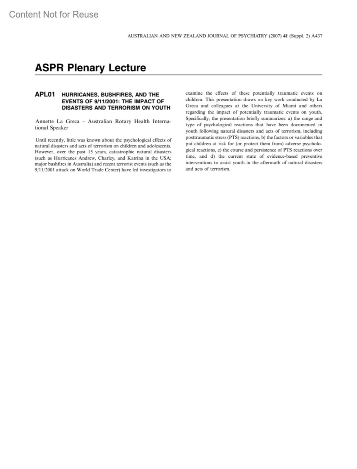 Australian and New Zealand Journal of Psychiatry 41(2_suppl):p A437, February 2007. | DOI: 10.1080/00048670701757043