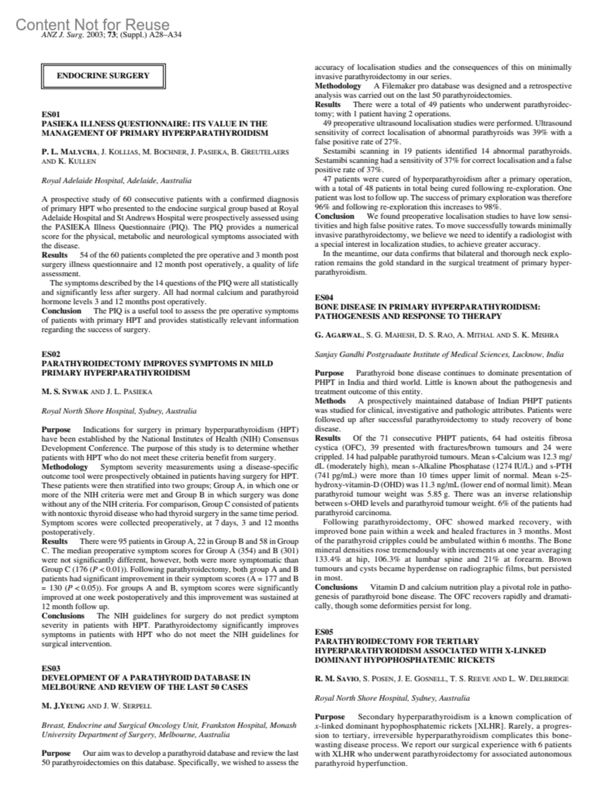 ANZ Journal of Surgery 73:p A28-A29, May 2003.