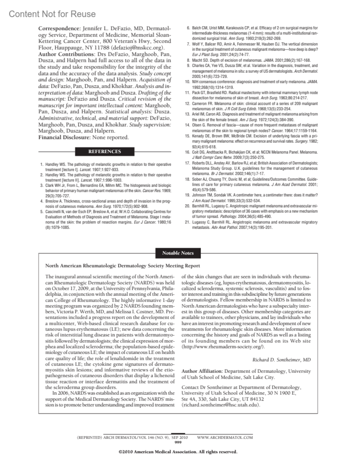 Archives of Dermatology 146(9):p 999, September 2010.