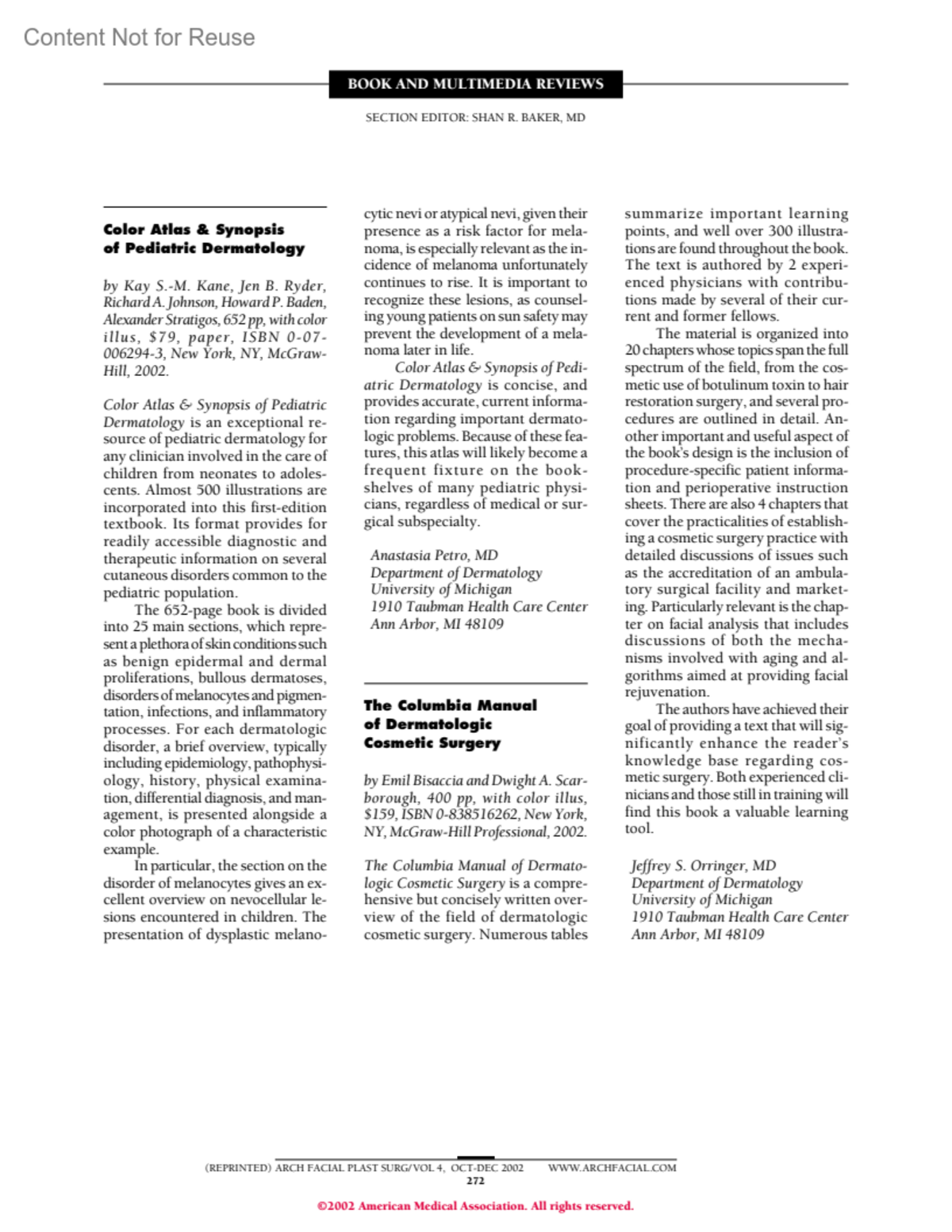 Archives of Facial Plastic Surgery 4(4):p 272, October-November-December 2002.