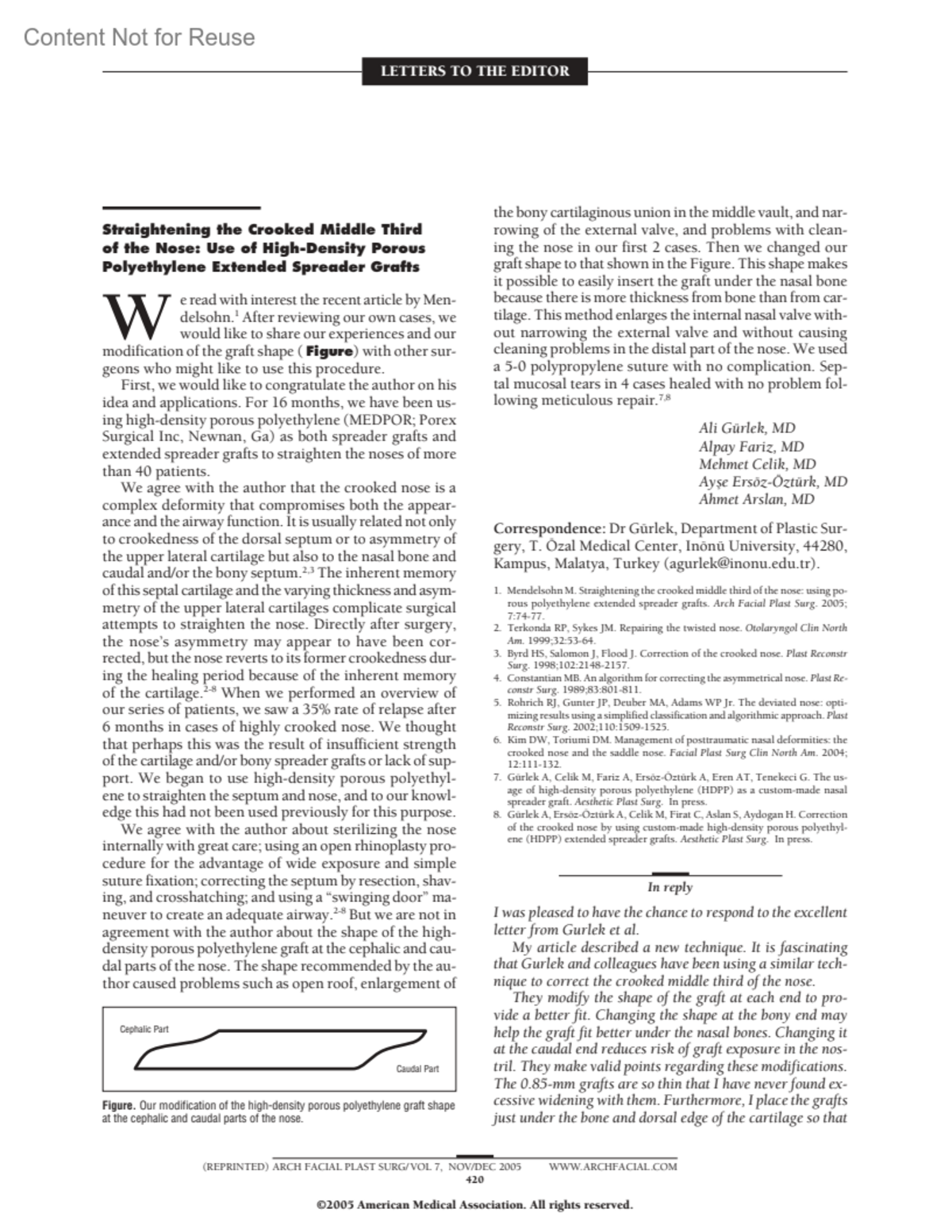 Archives of Facial Plastic Surgery 7(6):p 421, November-December 2005.