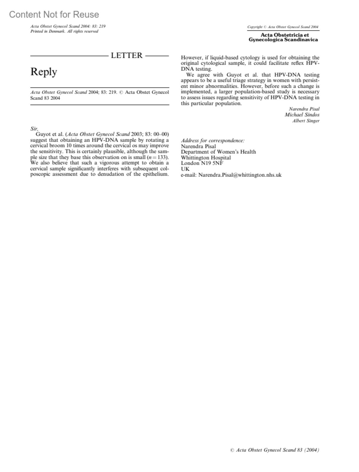 Acta Obstetricia et Gynecologica Scandinavica 83(2):p 219, February 2004.