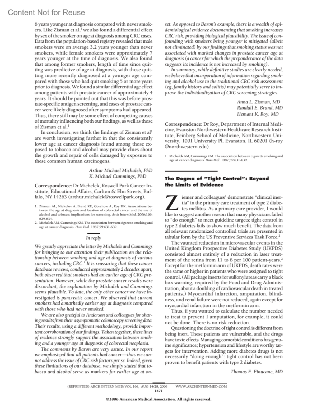 Archives of Internal Medicine 166(15):p 1672, August 14/28, 2006.