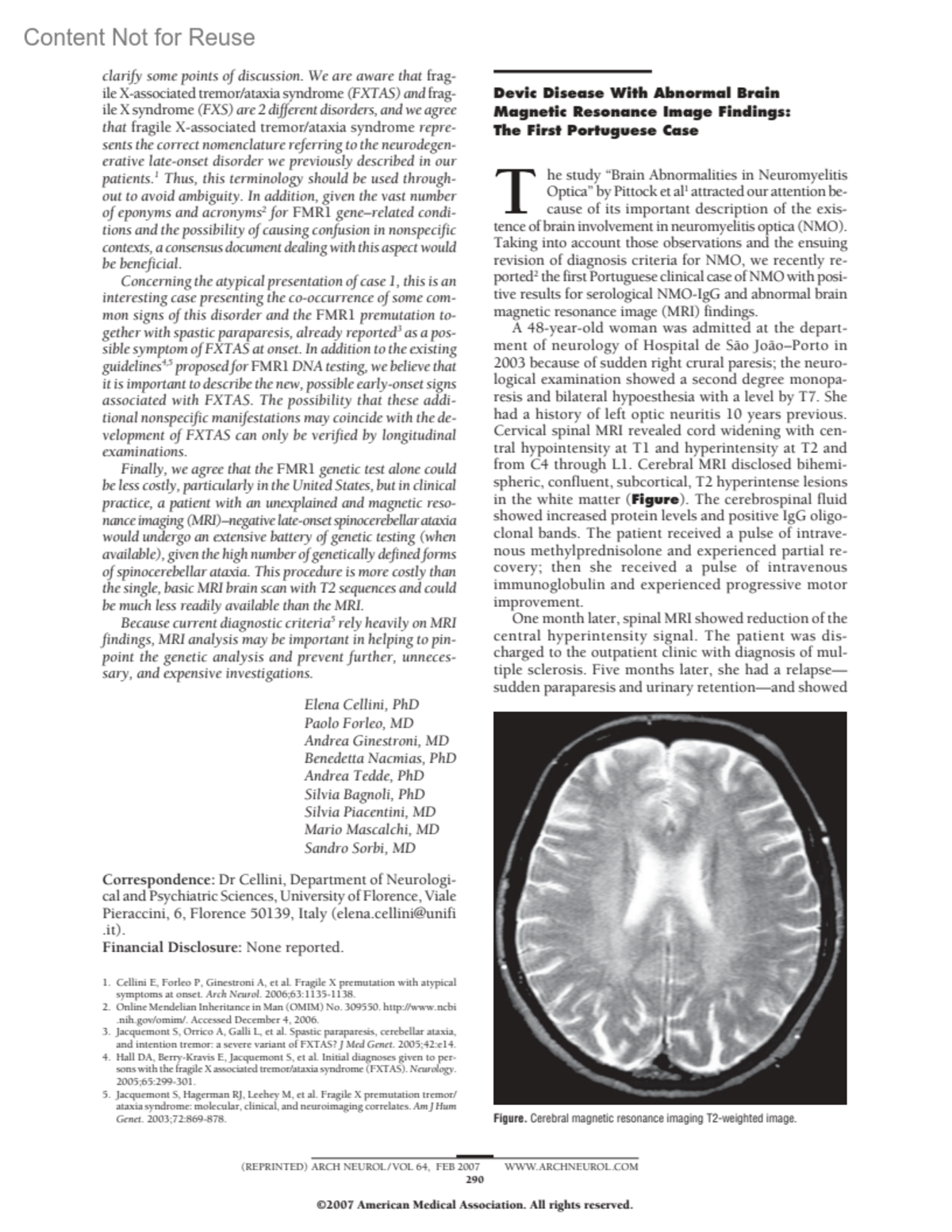 Archives of Neurology 64(2):p 291, February 2007.