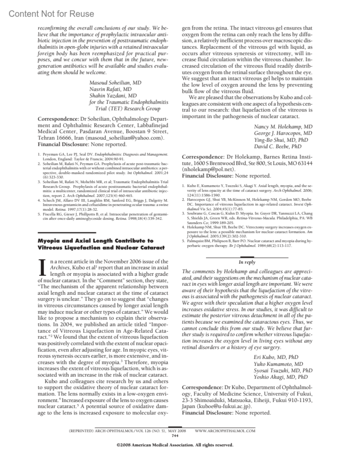 Archives of Ophthalmology 126(5):p 744, May 2008.
