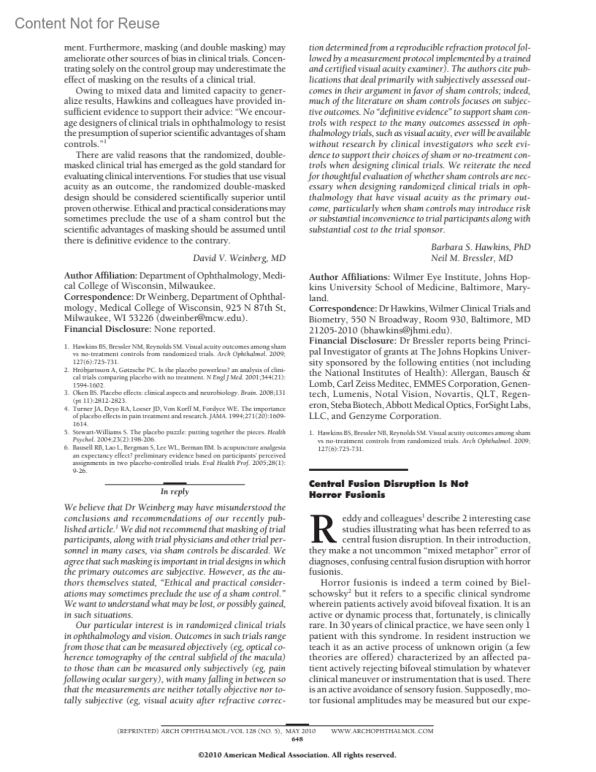 Archives of Ophthalmology 128(5):p 649, May 2010.