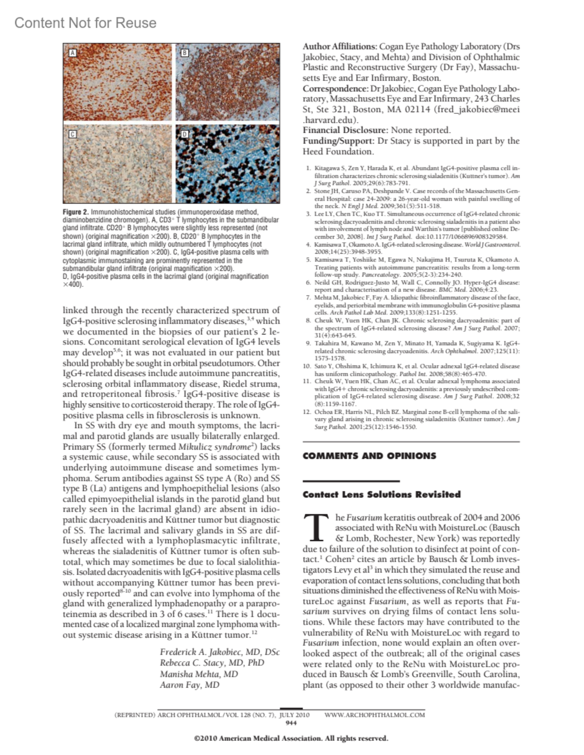 Archives of Ophthalmology 128(7):p 945, July 2010.