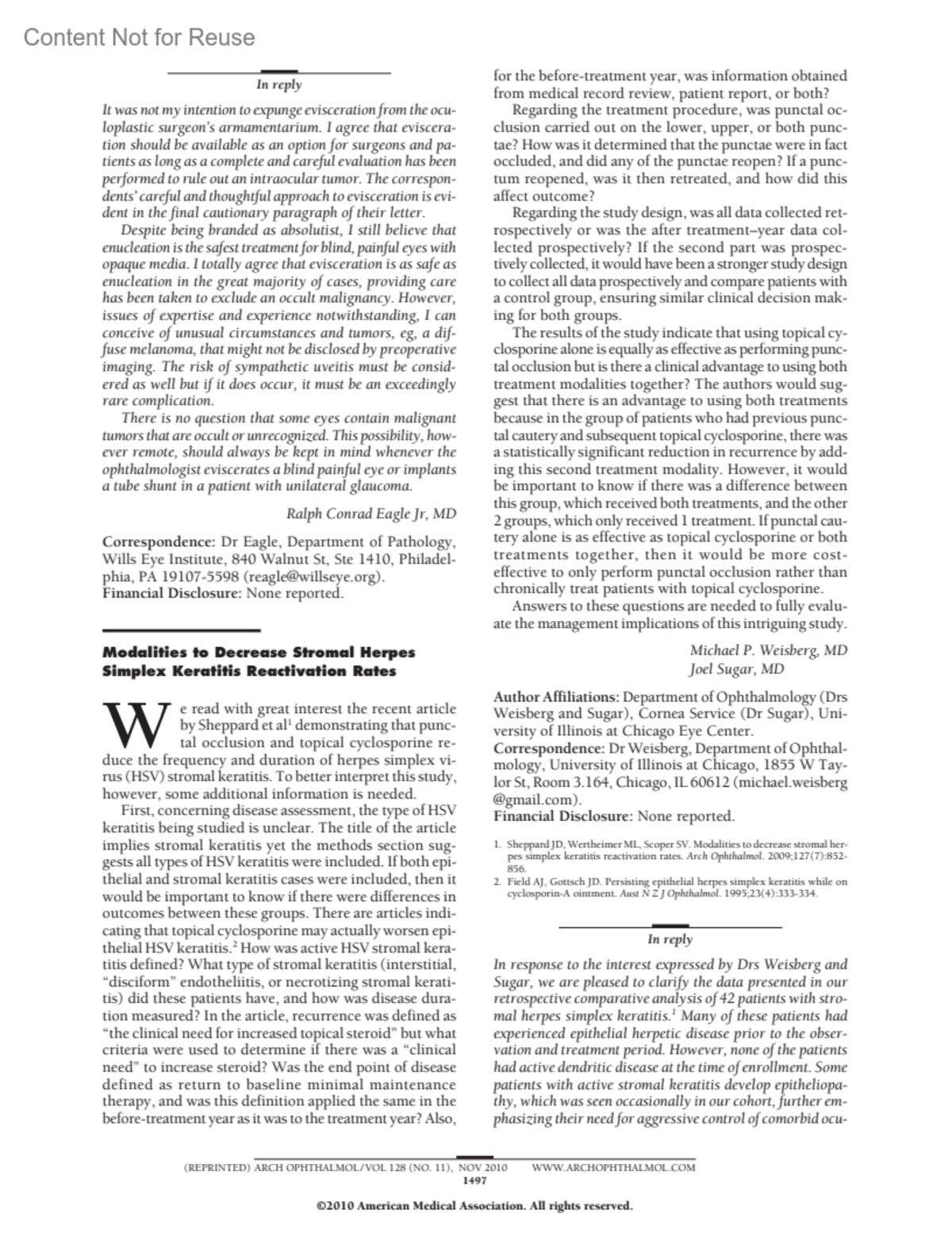 Archives of Ophthalmology 128(11):p 1497-1498, November 2010.