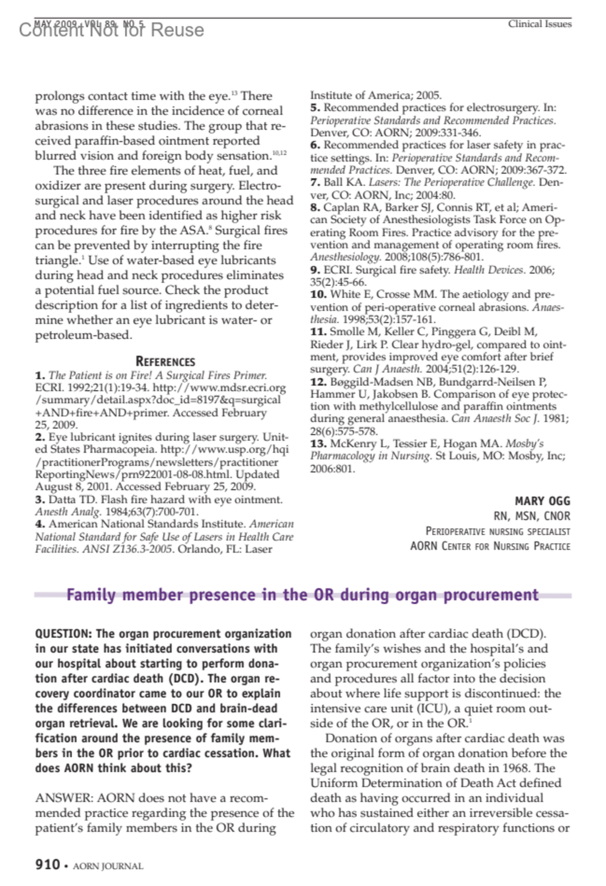 Editor's note:At various times throughout the year, the Recommended Practices Committee seeks review and comment on proposed recommended practices from members and other interested individuals. When available, these proposed recommended practices appear online athttp://www.aorn.org. Proposed recommended practice documents are available for review and comment for a 30-day period after they are posted. Interested individuals who do not have access to the Internet may obtain copies of the proposed documents by calling the Center for Nursing Practice at (800) 755-2676 x 334. A deadline for comments is indicated with each document. Please check these sources frequently to locate proposed recommended practices. All comments received are considered as the document is finalized. Thank you for your participation.