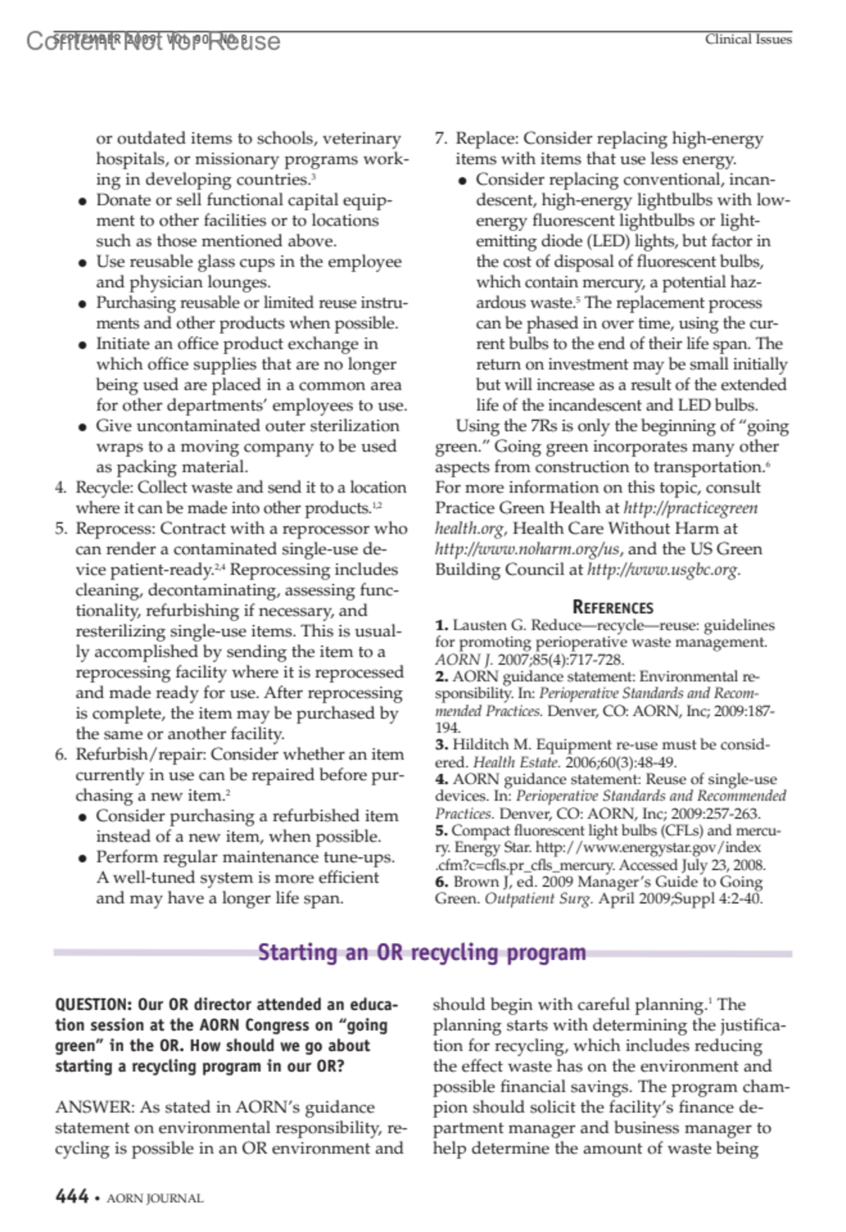 Editor's note:At various times throughout the year, the Recommended Practices Committee seeks review and comment on proposed recommended practices from members and other interested individuals. When available, these proposed recommended practices appear online athttp://www.aorn.org. Proposed recommended practice documents are available for review and comment for a 30-day period after they are posted. Interested individuals who do not have access to the Internet may obtain copies of the proposed documents by calling the Center for Nursing Practice at (800) 755-2676 x 334. A deadline for comments is indicated with each document. Please check these sources frequently to locate proposed recommended practices. All comments received are considered as the document is finalized. Thank you for your participation.