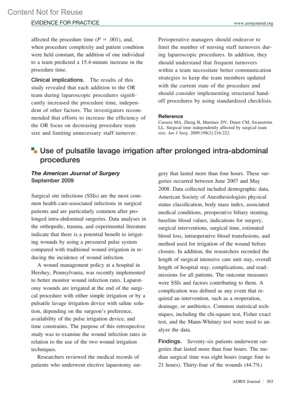 The intent of this column is to inform readers of current published research that may affect perioperative practice. The clinical implications for each abstracted article are specific to that article only. Individuals intending to put these findings into practice are encouraged to review the original article to determine its applicability to their setting. Original citations are listed for each article. The articles are condensed and the clinical implications are added by George Allen, PhD, RN, CNOR, CIC, director of infection control, Downstate Medical Center, Brooklyn, NY.