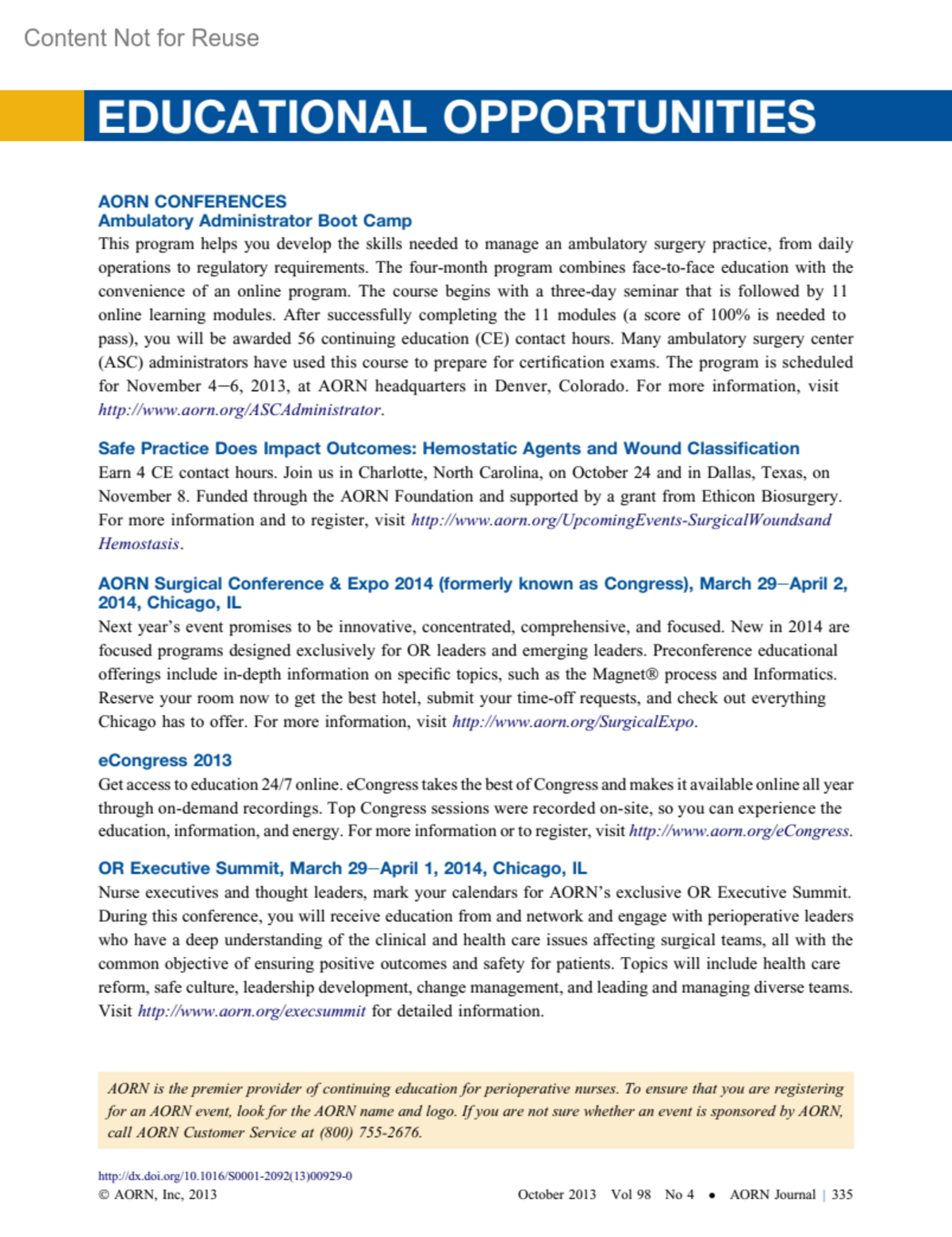 AORN is the premier provider of continuing education for perioperative nurses. To ensure that you are registering for an AORN event, look for the AORN name and logo. If you are not sure whether an event is sponsored by AORN, call AORN Customer Service at (800) 755-2676.