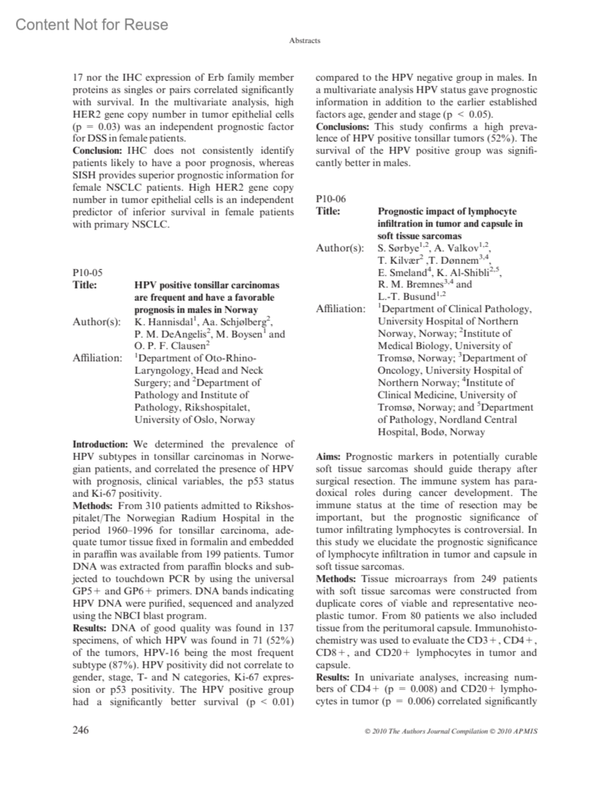 HPV positive tonsillar carcinomas are frequent and have a favorable prognosis in males in Norway