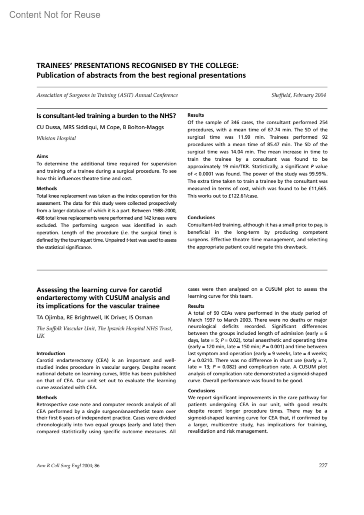 Annals of the Royal College of Surgeons of England 86(3):p 228, May 2004.