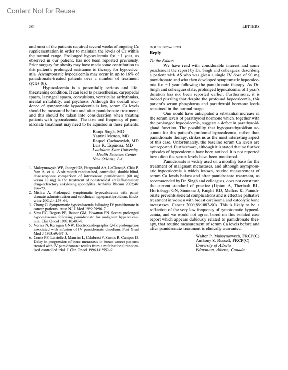 Arthritis & Rheumatism 48(2):p 584, February 2003.