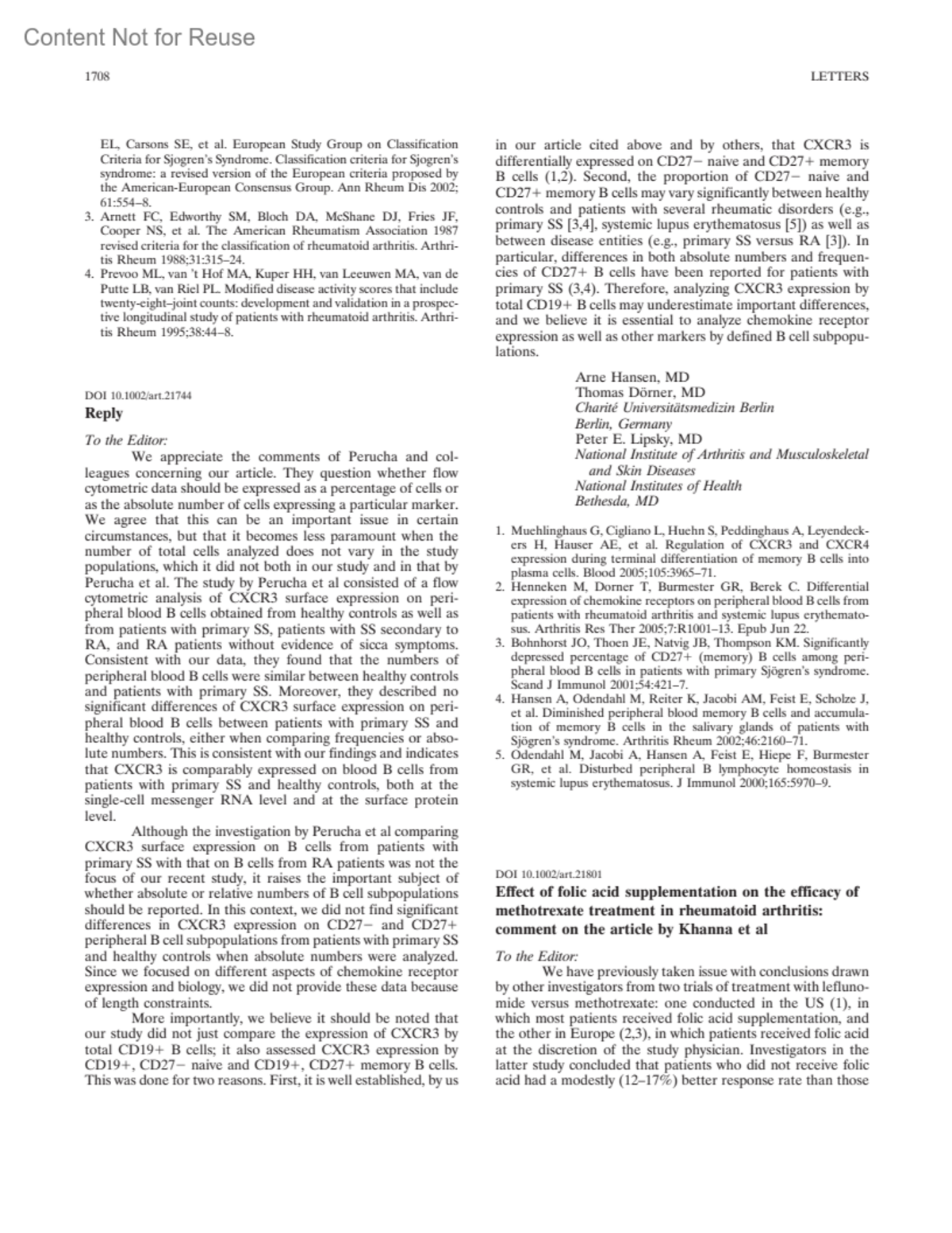 Arthritis & Rheumatism 54(5):p 1708, May 2006.