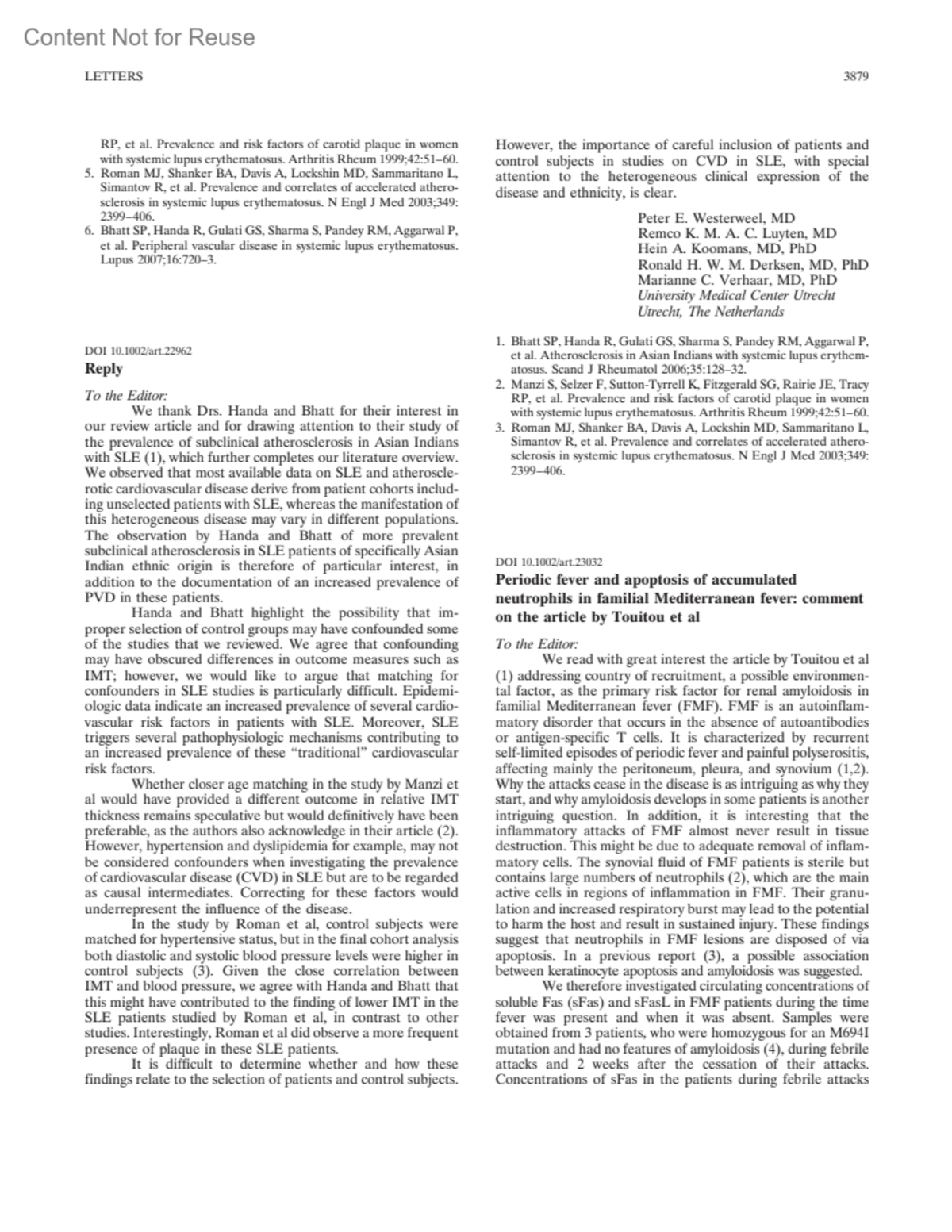 Arthritis & Rheumatism 56(11):p 3879, November 2007.