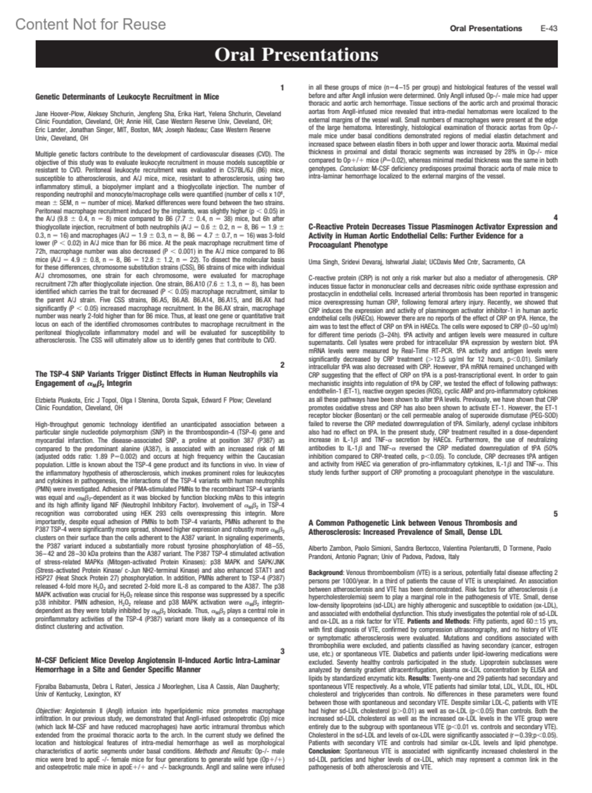 Unsaturated Fatty Acids Phosphorylate and Destabilize ABCA1 through a Phospholipase D2 Pathway25Wang, YutongOram, John FAuthor informationUniv of Washington, Seattle, WAArteriosclerosis, Thrombosis, & Vascular Biology 25(5):p e47, May 2005.Copyright © 2005 American Heart Association, Inc.