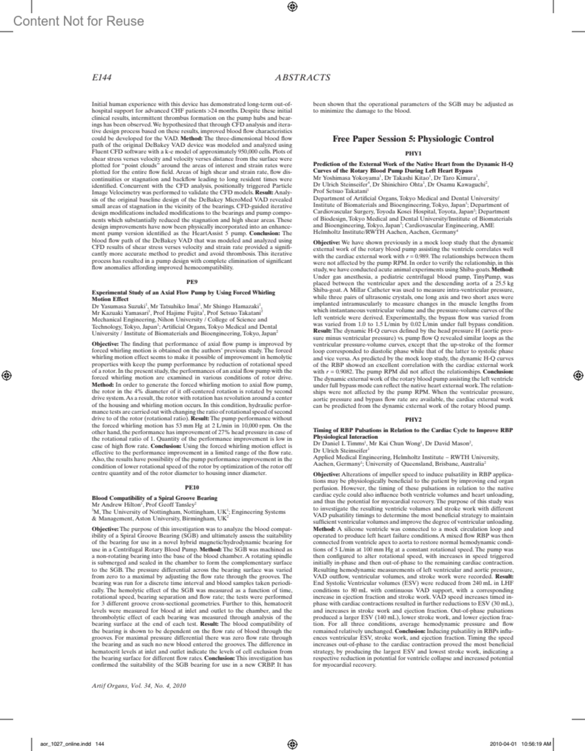 1Department of Artificial Organs, Tokyo Medical and Dental University/Institute of Biomaterials and Bioengineering, Tokyo, Japan; Department of Cardiovascular Surgery, Toyoda Kosei Hospital, Toyota, Japan2; Department of Biodesign, Tokyo Medical and Dental University/Institute of Biomaterials and Bioengineering, Tokyo, Japan3; Cardiovascular Engineering, AME Helmholtz Institute/RWTH Aachen, Aachen, Germany4