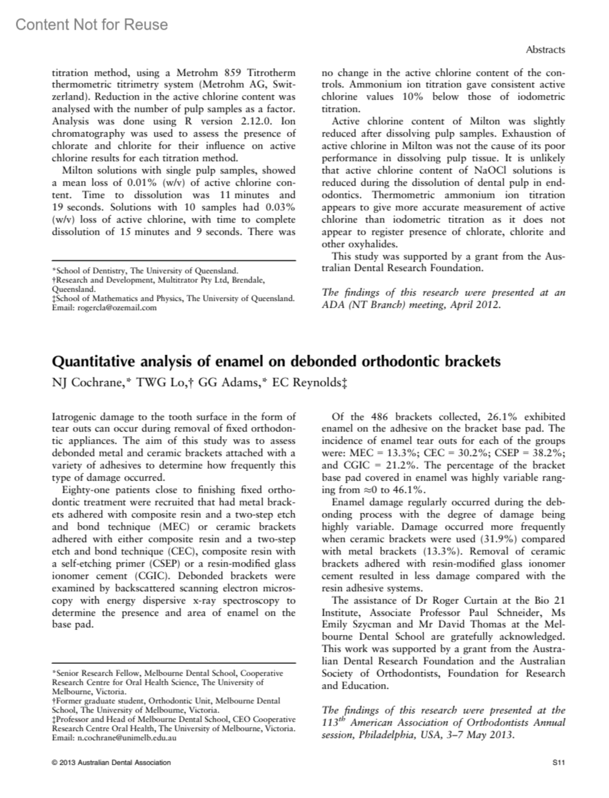 *Senior Research Fellow, Melbourne Dental School, Cooperative Research Centre for Oral Health Science, The University of Melbourne, Victoria.