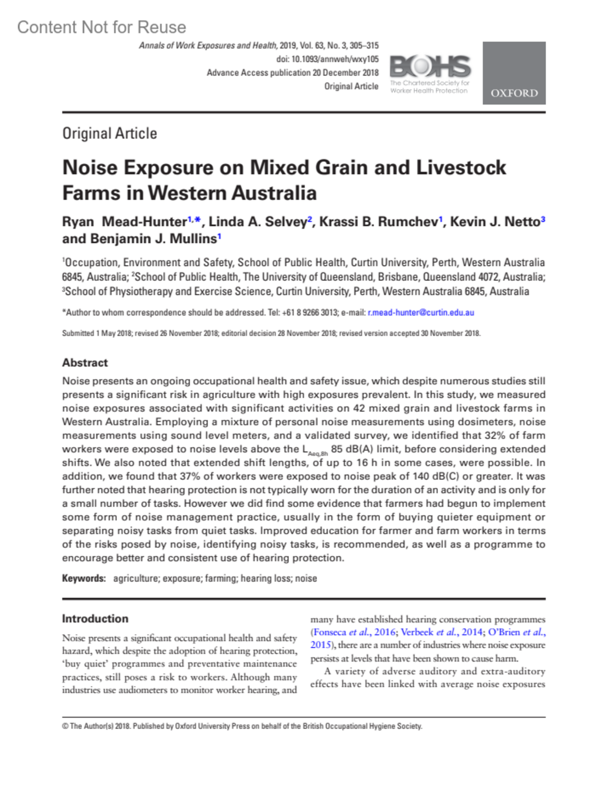 Noise Exposure on Mixed Grain and Livestock Farms in Western Australia