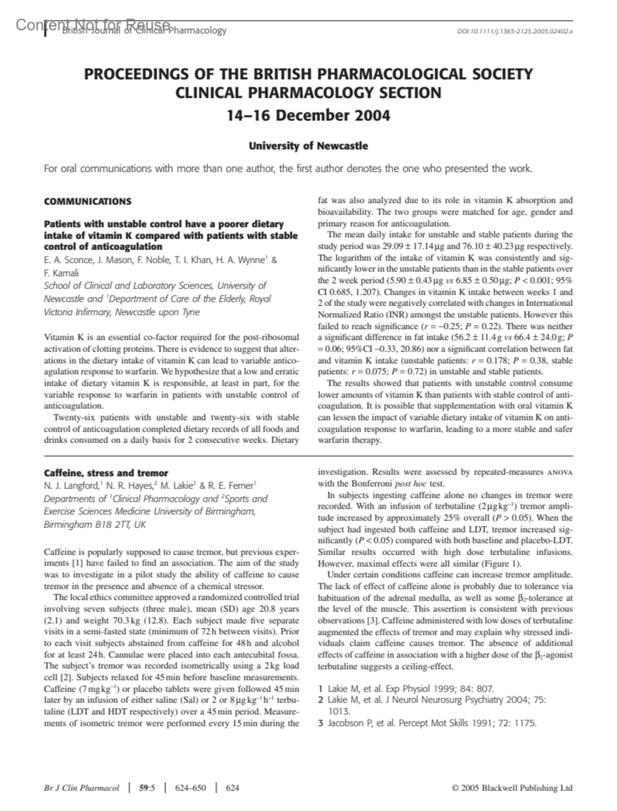 British Journal of Clinical Pharmacology 59(5):p 634-635, May 2005.