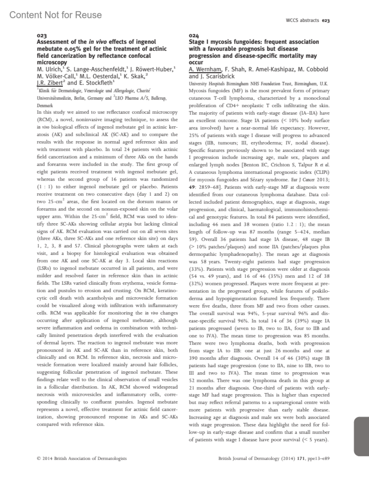 British Journal of Dermatology 171(3):p e23, September 2014.