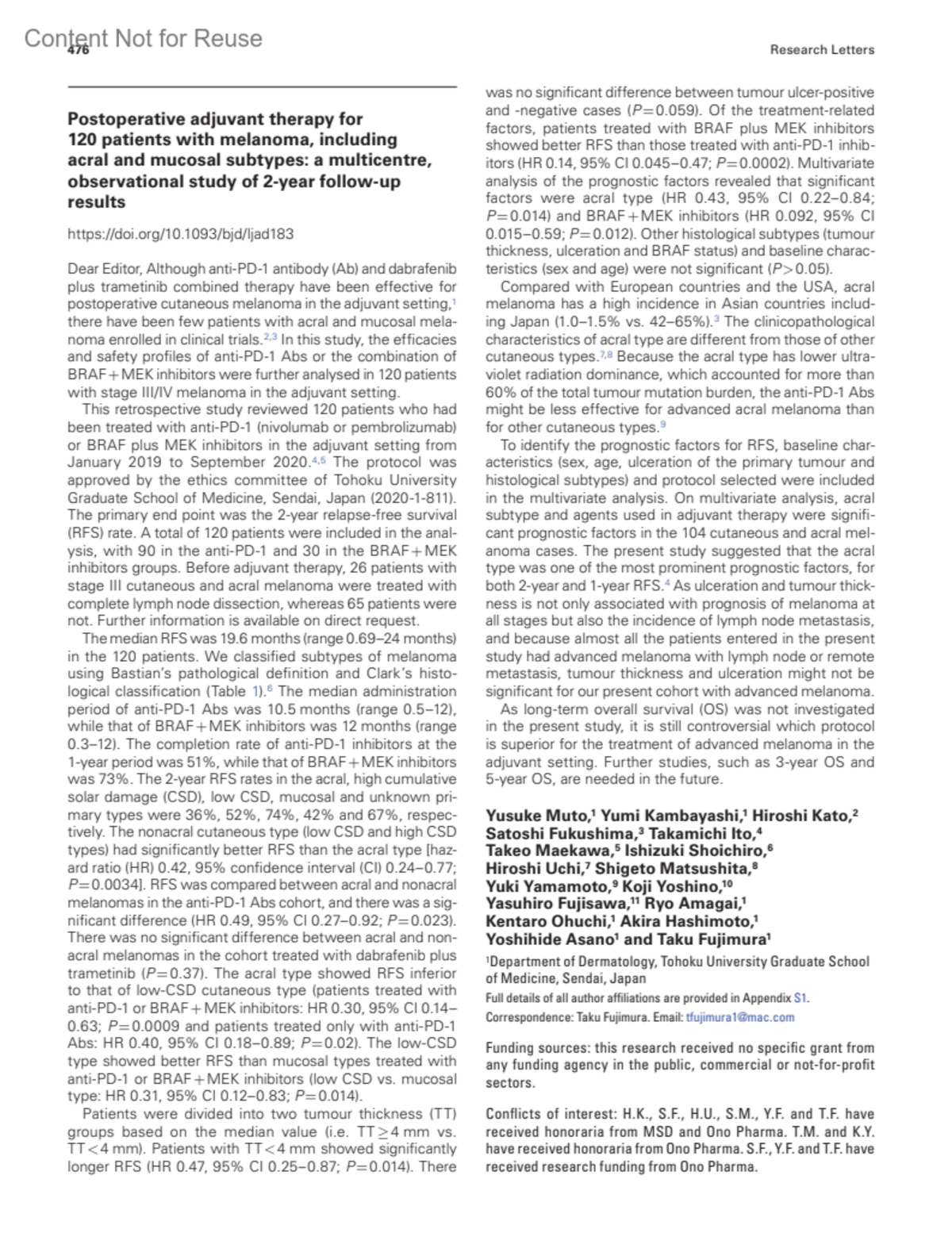 - Fujimura, Taku Conceptualization; Formal analysis; Project administration; Resources; Supervision; Validation; Writing - original draft; Writing - review & editing
