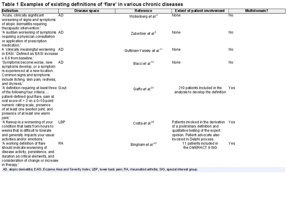 • Several definitions of flare have been proposed but with limited patient involvement and input.