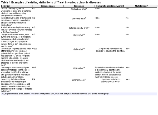 Several definitions of flare have been proposed but with limited patient involvement and input.