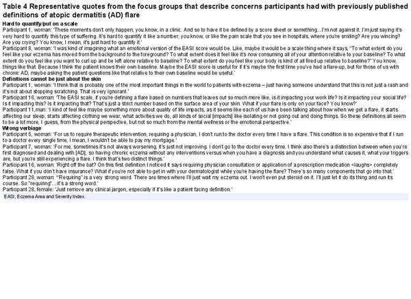 Participants’ reactions to existing atopic dermatitis flare definitions