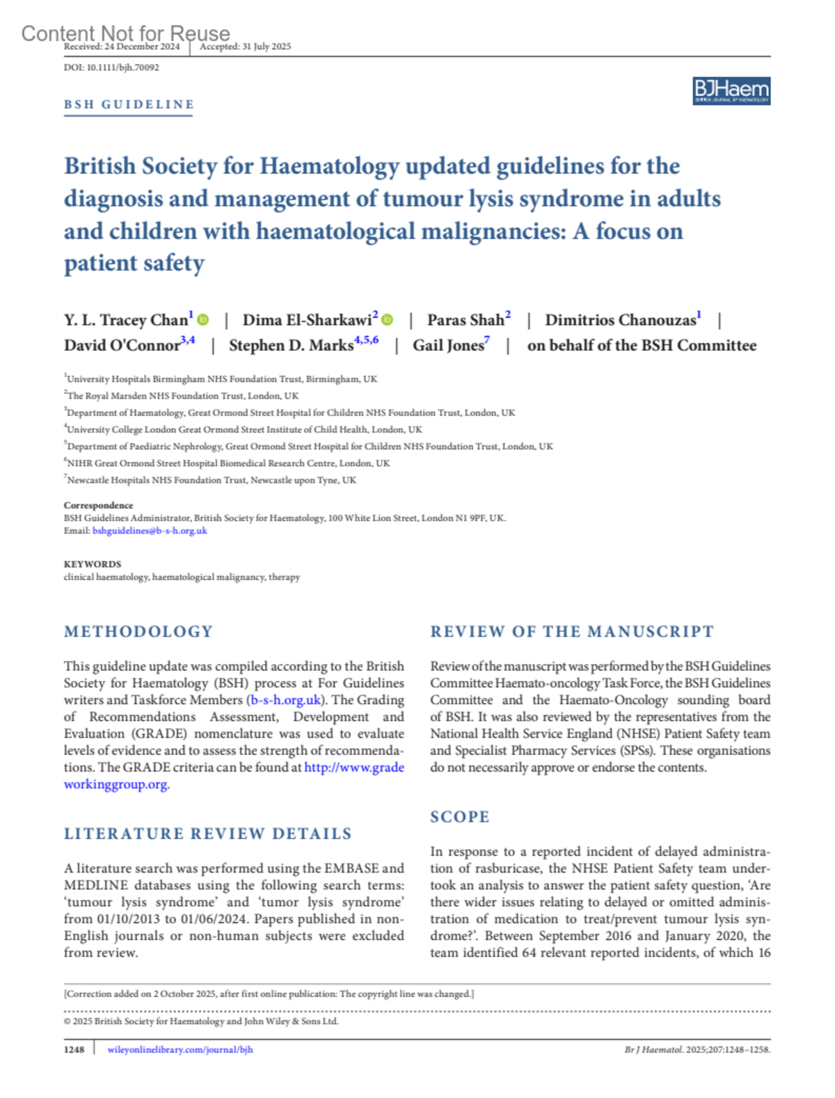 British Society for Haematology updated guidelines for the diagnosis and management of tumour lysis syndrome in adults and children with haematological malignancies