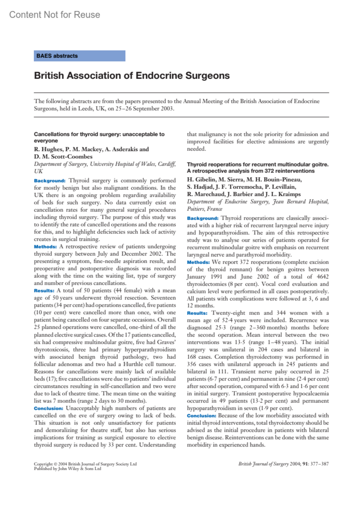 British Journal of Surgery 91(3):p 383-384, March 2004.