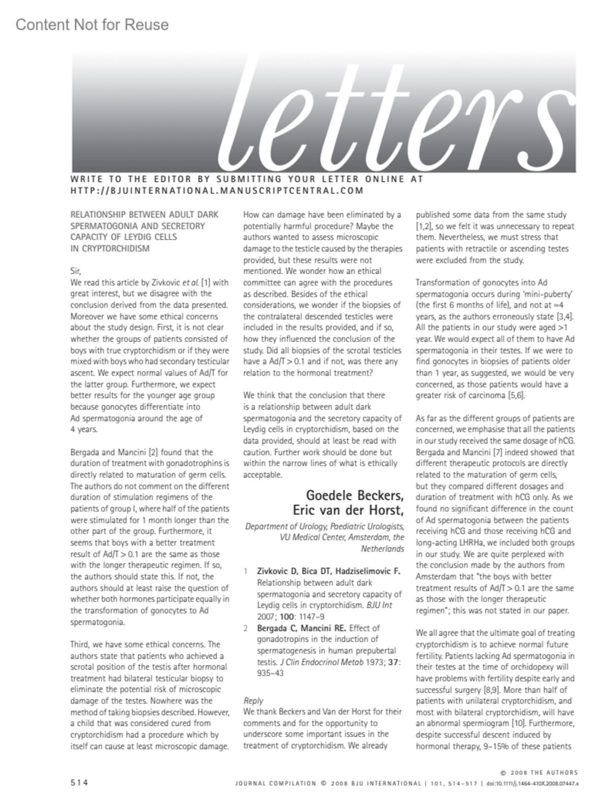 RELATIONSHIP BETWEEN ADULT DARK SPERMATOGONIA AND SECRETORY CAPACITY OF LEYDIG CELLS IN CRYPTORCHIDISM