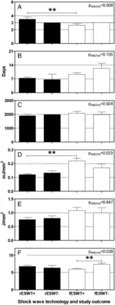 Furthermore, absolute and relative numbers of studies performed with, respectively, electrohydraulic, electromagnetic or piezoelectric shock wave generators were calculated. This was done separately for the groups fESWT+ and fESWT−. Comparison of groups was performed using χ2 test.