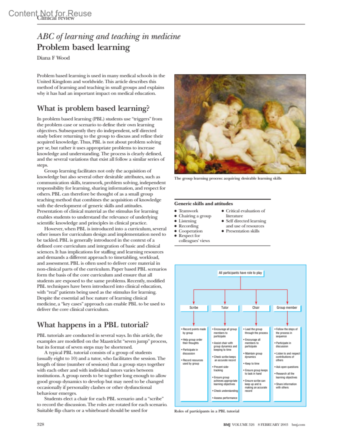 The ABC of learning and teaching in medicine is edited by Peter Cantillon, senior lecturer in medical informatics and medical education, National University of Ireland, Galway, Republic of Ireland; Linda Hutchinson, director of education and workforce development and consultant paediatrician, University Hospital Lewisham; and Diana F Wood, deputy dean for education and consultant endocrinologist, Barts and the London, Queen Mary's School of Medicine and Dentistry, Queen Mary, University of London. The series will be published as a book in late spring.
