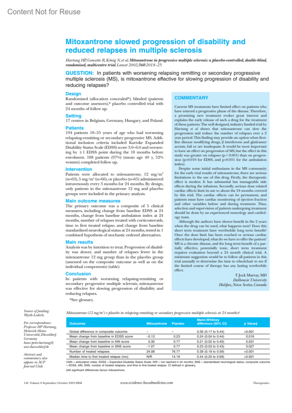 Evidence Based Medicine 8(5):p 148, September-October 2003.