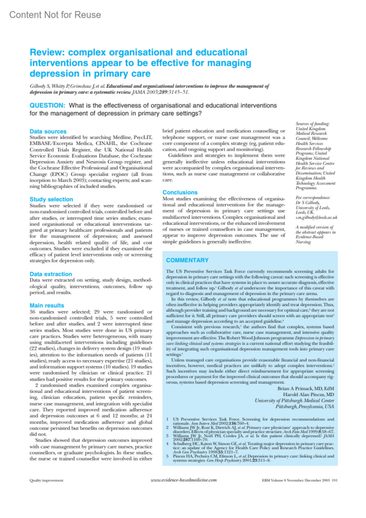 Evidence Based Medicine 8(6):p 191, November-December 2003.