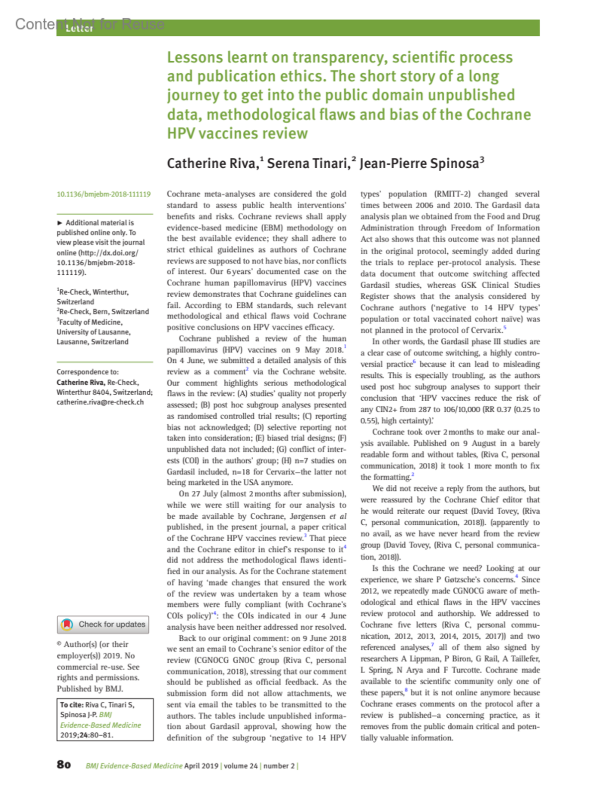 Lessons learnt on transparency, scientific process and publication ethics. The short story of a long journey to get into the public domain unpublished data, methodological flaws and bias of the Cochrane HPV vaccines review