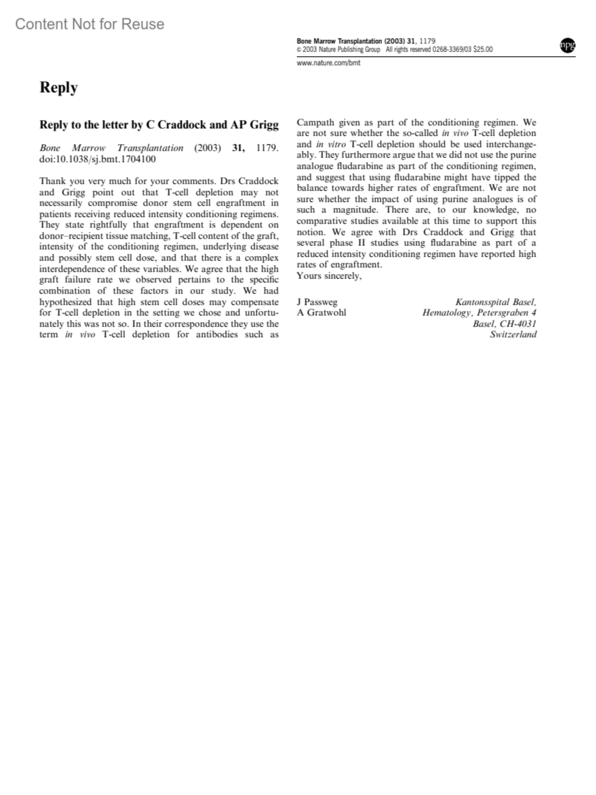 Bone Marrow Transplantation 31(12):p 1179, June 2003.