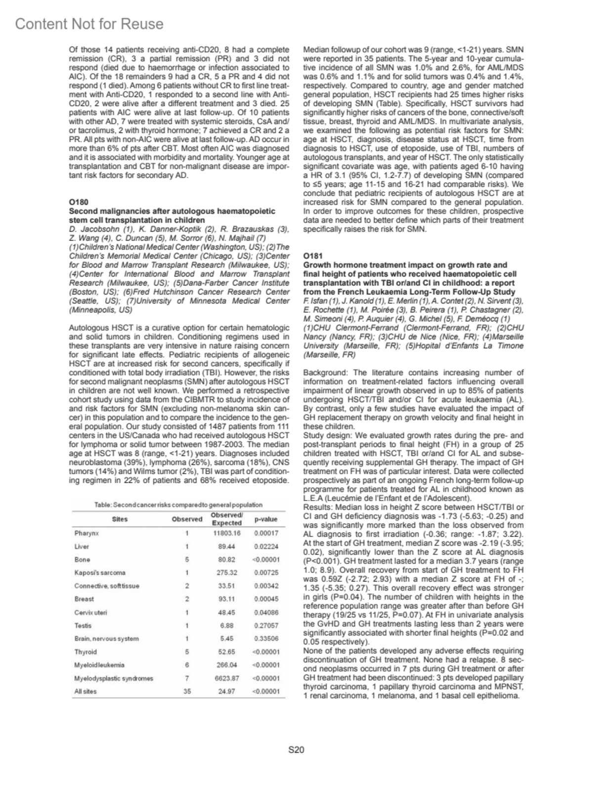 Bone Marrow Transplantation 46:p S20-21, April 2011.