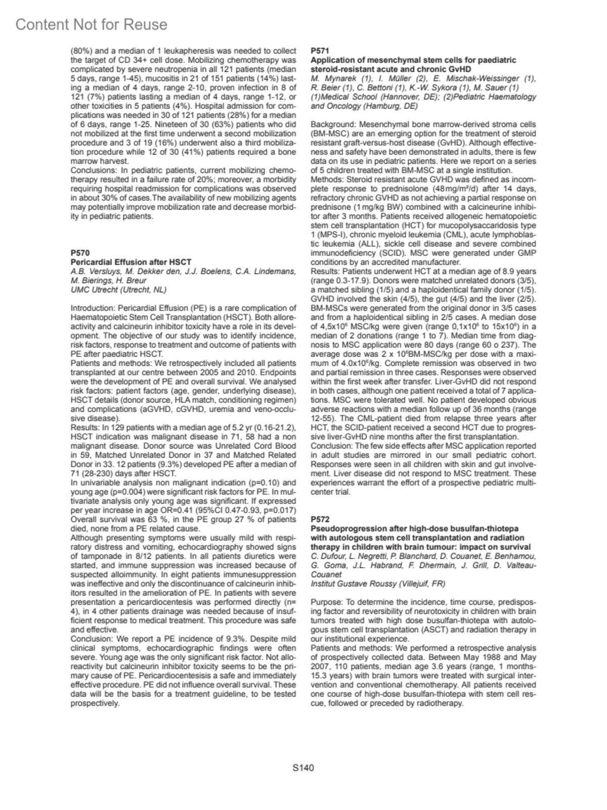 Bone Marrow Transplantation 46:p S140-S141, April 2011.
