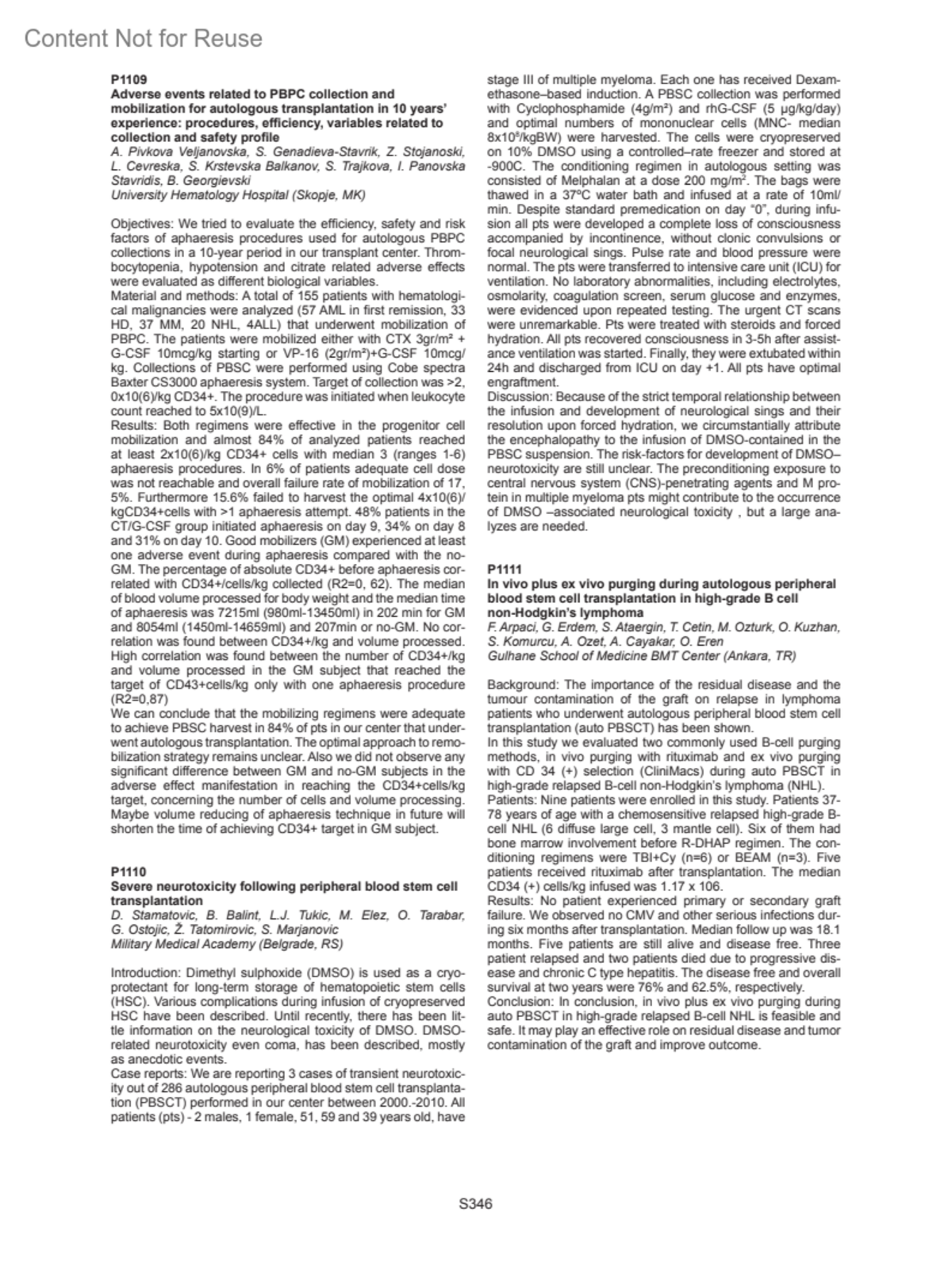 Bone Marrow Transplantation 46:p S346, April 2011.
