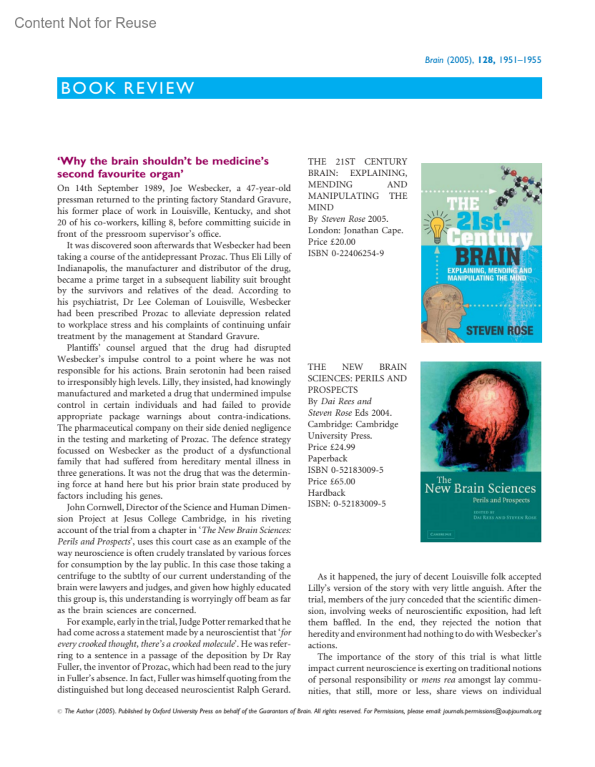 PSYCHOSOMATIC: FEMINISM AND THE NEUROLOGICAL BODYPersaud, RajAuthor informationMaudsley Hospital and Institute of Psychiatry LondonBrain 128(8):p 1951-1955, August 2005.Copyright © Guarantors of Brain 2005. Published by Oxford University Press. All righs reserved.