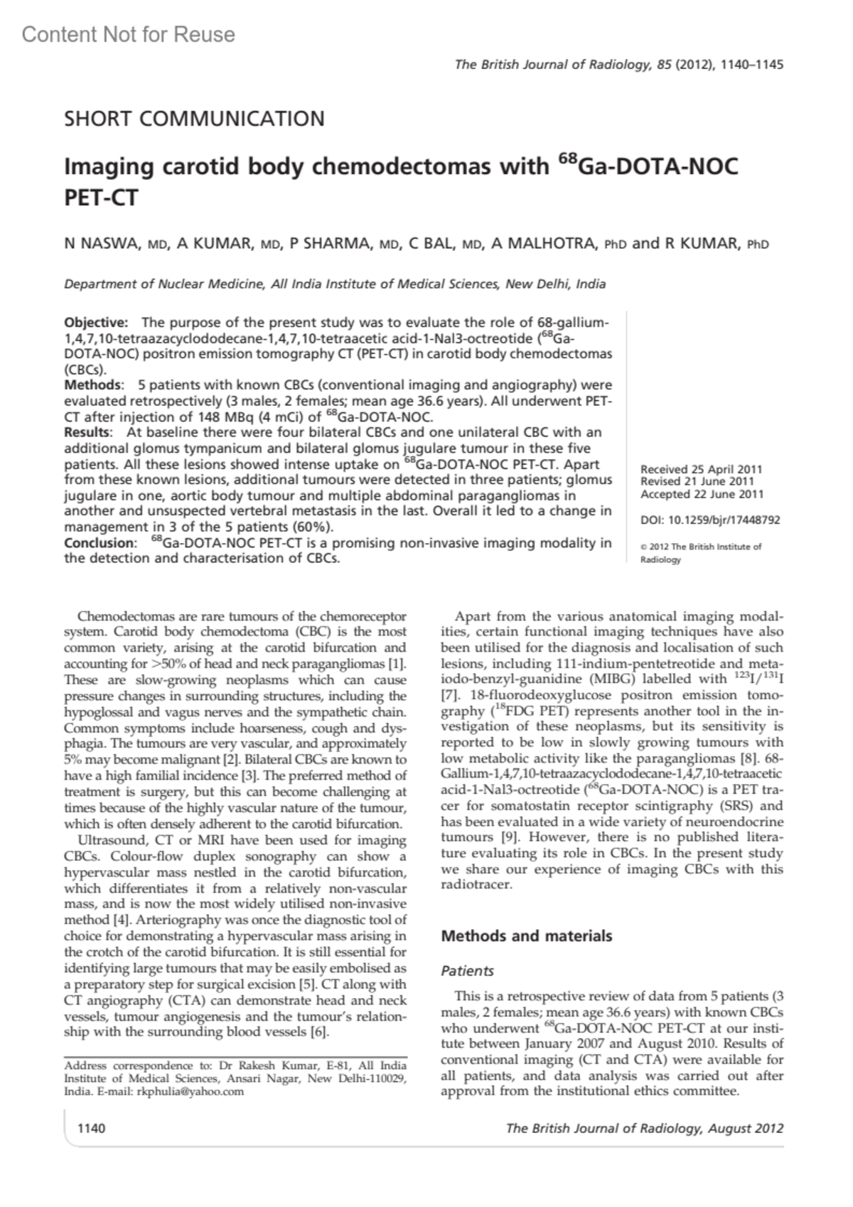 British Journal of Radiology 85(1016):p 1140-1145, August 01, 2012. | DOI: 10.1259/bjr/17448792